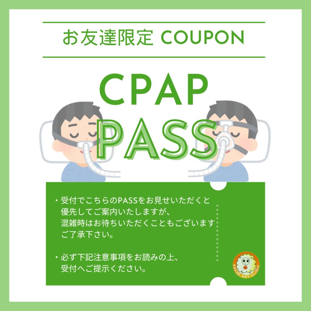 – CPAPPASSご利用時は順番予約を取らずにご来院ください。