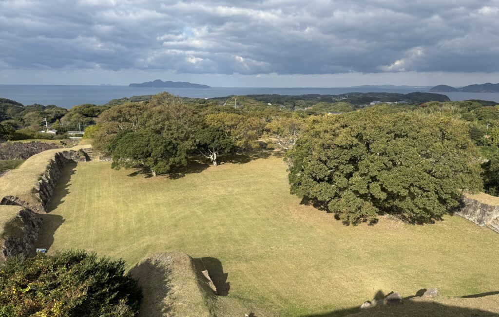 本丸跡からの玄界灘の眺望:海を見下ろす絶景は必見。秀吉が「海外戦略」を描いた景色が眼前に広がります。