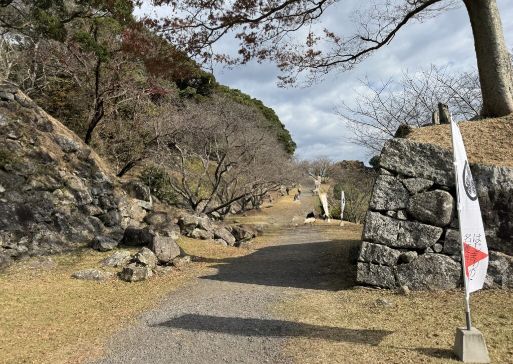 そして早速入城しました、建物は残っておらず、石垣や土塁などの遺構を見ることができます