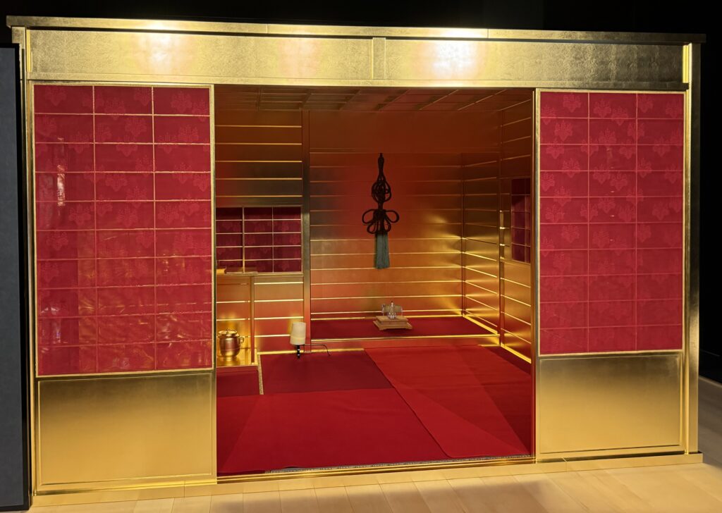 秀吉が名護屋城に持ち込ませ、茶会や外国使節の歓待に使用した「黄金の茶室」が再現されて展示されていました、金ピカが天下人の力を示しています