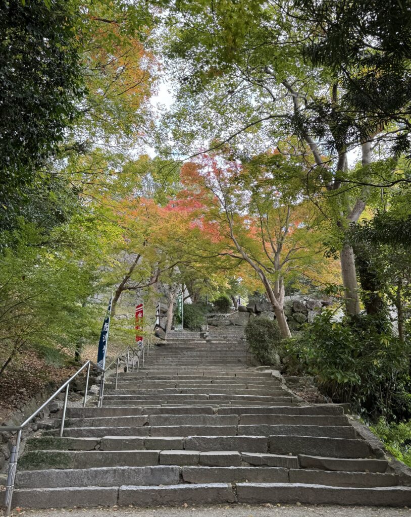 長い石階段を登り入城します、11月の季節柄紅葉がきれいでした
