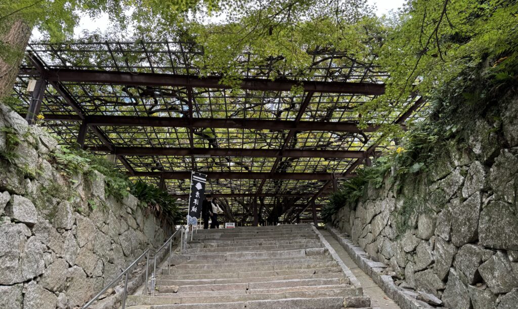 天然記念物の「紫フジ」の藤棚を通り、大手門に向かいます