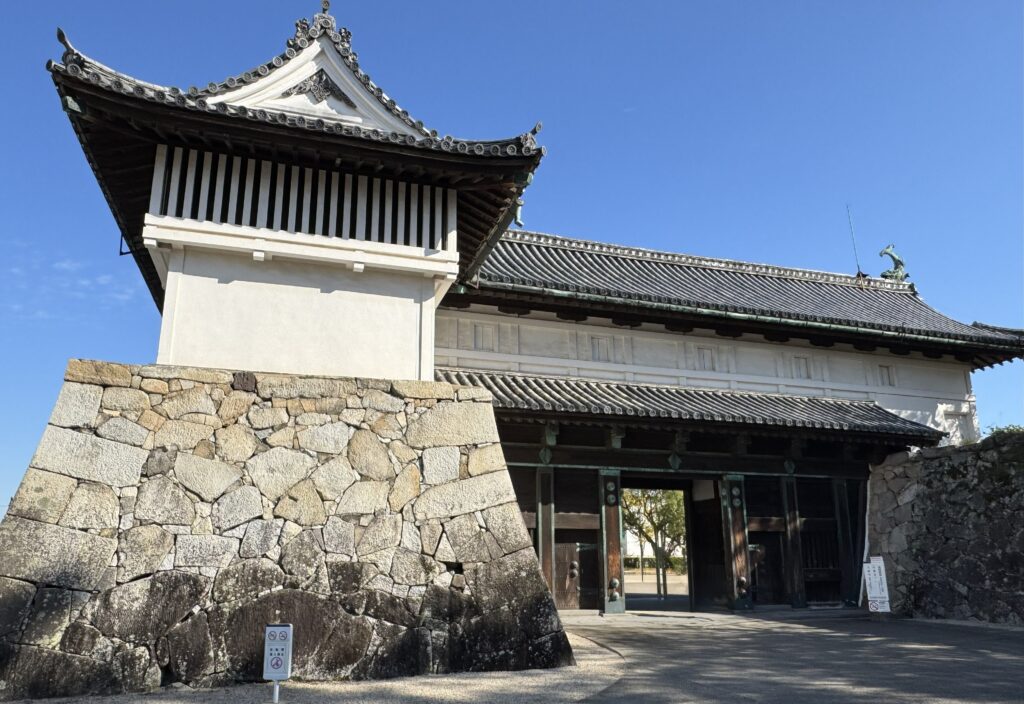 大手門より左側を見ると、天守閣を望むことができます、院長はこのアングルから見た天守閣が大好きです!!