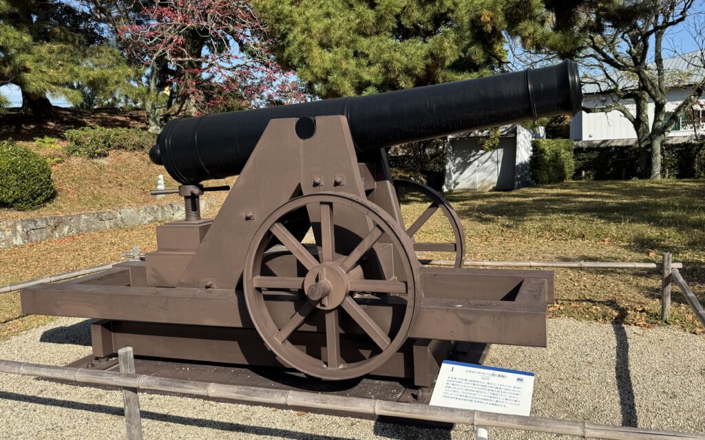 入城すると24ポンドカノン砲の複製を見ることができます、直正は東京の築地に反射炉を築き、日本で最初の鉄製大砲を鋳造したそうです、品川台場にも50門の鉄製大砲を設置したそうです、この大砲は1820年頃アメリカで製造されて幕末に輸入され、かつては東京都渋谷区の旧鍋島邸に置かれていたものの複製品だそうです